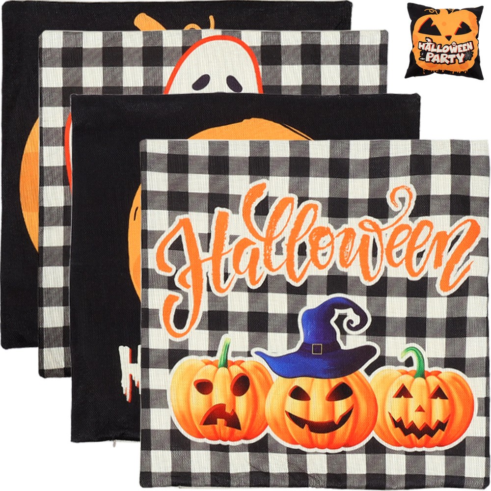 4 Pcs Pumpkin Bat Pillow Cover Halloween Pillowcase Cases Decorations Throw